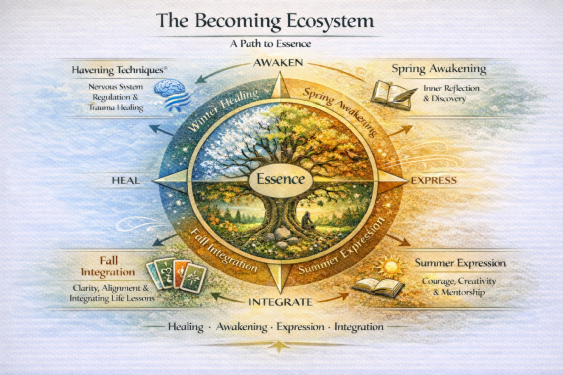 The Becoming Ecosystem offers a wider view of that process — a way of seeing how the inner seasons belong to a larger whole. Rather than asking you to force clarity or move in a straight line, it invites you to notice where you are and what this season may be showing you.